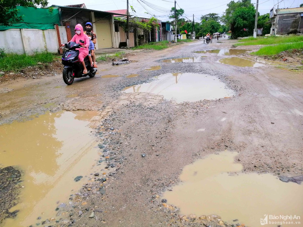Tuyến đường Nguyễn Trường Tộ đoạn qua địa phận xã Hưng Đông là một trong những điểm xuống cấp nặng nề nhất trên địa bàn TP. Vinh với chi chít ổ gà, ổ voi. Đây được xem là tuyến đường "đau khổ" nhất TP.Vinh vì mỗi khi mưa xuống vì xuất hiện hàng chục vũng nước khổng lồ, gây nguy hiểm cho người đi đường. Ảnh chụp trong ngày 12/10. Ảnh: P.V
