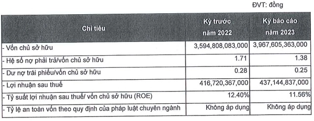 Tính đến ngày 31/12/2023, vốn chủ sở hữu của GreenFeed Việt Nam là 3.967,6 tỷ đồng, tăng 10,4% so với đầu năm. Hệ số nợ phải trả/vốn chủ sở hữu giảm từ 1,71 lần xuống 1,38 lần, tương ứng nợ phải trả của doanh nghiệp đạt gần 5.500 tỷ đồng.