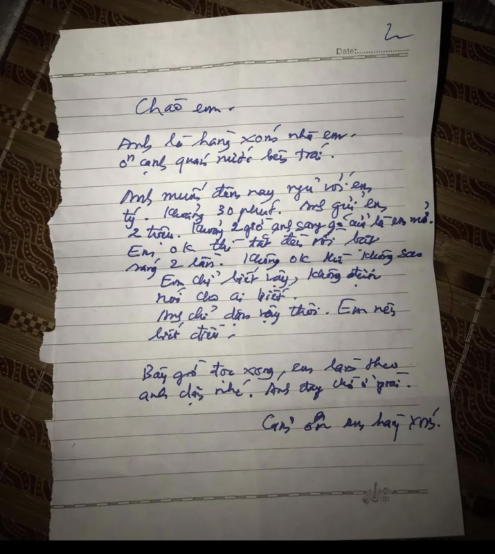 Trước đó, ngày 2/7, trên trang mạng xã hội xuất hiện bài viết của cô gái sinh năm 2001. Trong nội dung bài viết, cô gái tố cáo việc bị một người đàn ông quấy rối tình dục bằng hình thức viết thư xin “ngủ cùng” một đêm.