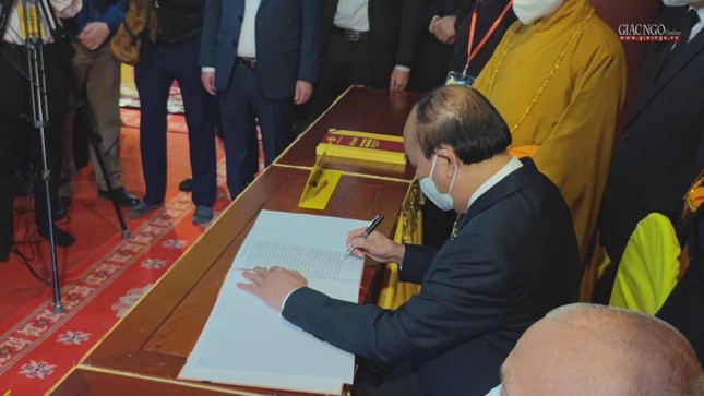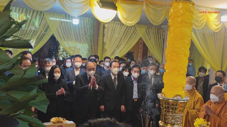 Phái đoàn đại diện lãnh đạo Đảng, Quốc hội, Chính phủ, Bộ Nội Vụ, Ban Dân vận, Ủy ban Trung ương MTTQVN, Ban Tôn giáo Chính phủ, UBND TP.Hà Nội do ngài Nguyễn Xuân Phúc, Ủy viên Bộ Chính trị, Chủ tịch nước làm trưởng đoàn đã thành kính dâng hương và đặt vòng hoa kính viếng Giác linh Đức Pháp chủ - Đại lão Hòa thượng Thích Phổ Tuệ.
