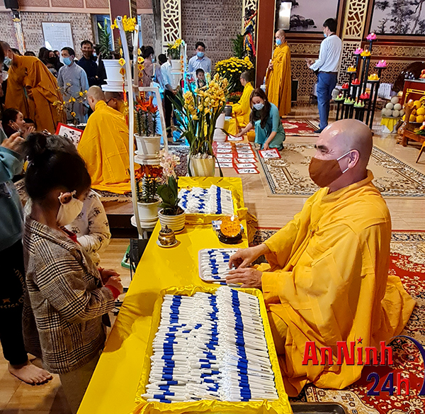 Lên chùa xin chữ và được thầy tặng bút vào dịp đầu năm tại chùa Đức Hậu, Nghệ An - nét đẹp văn hóa truyền thống thể hiện sự hiếu học của người Việt. Ảnh: Lê Hùng