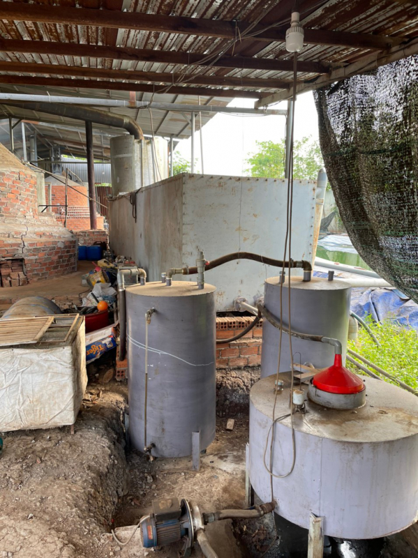 Một phần khu lò nấu và pha chế dầu giả.