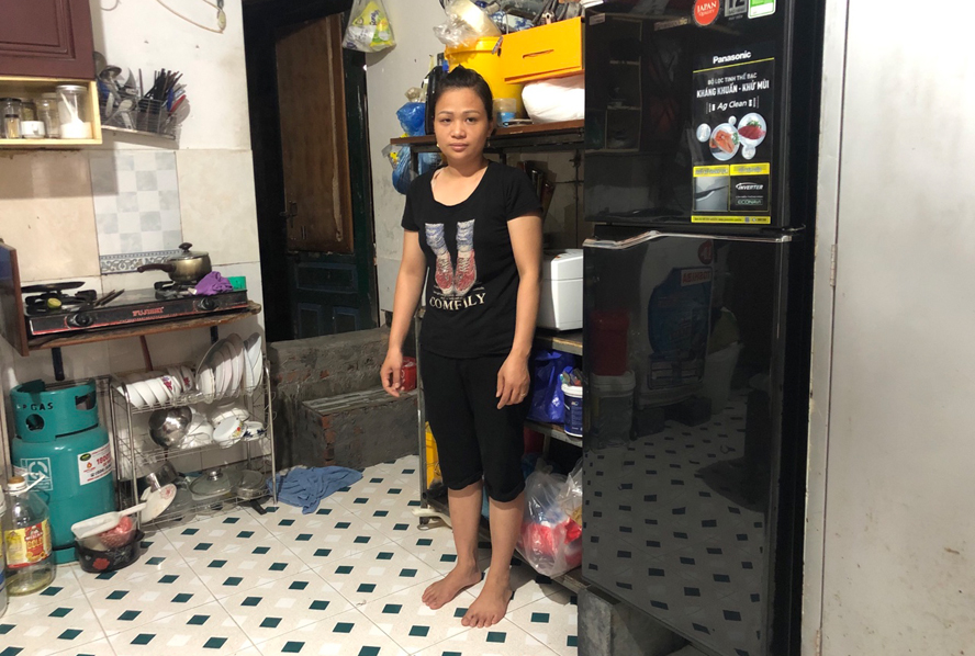 Ngôi nhà của chị Ngô Thị Thúy phải xây tường chắn cửa phòng để tránh nước ngập khắp nhà.