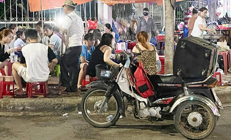 Loa karaoke di động của người bán hàng rong luôn là ám ảnh của nhiều người dân ở các khu dân cư. (Ảnh do PV chụp tại một cơ sở kinh doanh ở đường Phạm Văn Đồng (TP.Quảng Ngãi) vào tối ngày 7.6.2021)