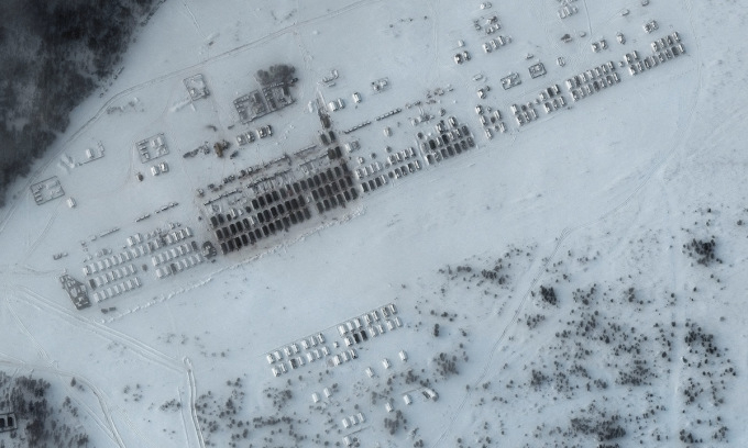 Phía Nga từ chối xác thực thông tin rò rỉ nhưng tái khẳng định mọi động thái quân sự ở biên giới phía Tây hoàn toàn vì mục đích phòng thủ. Ảnh: Maxar.