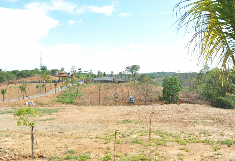 Nguyên quả đồi rộng gần 1ha được ông Hà cho san ủi, xây dựng nhiều hạng mục bên trong.