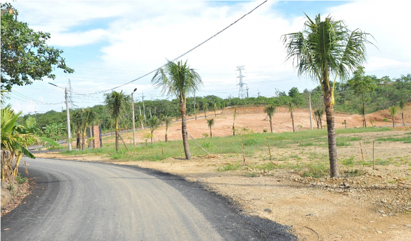 Con đường nhựa đấu nối được ông Hà cho rải thảm nhựa sai quy định chạy dọc theo khu đất.