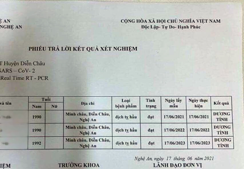 Phiếu trả lời kết quả xét nghiệm của cơ quan chức năng bị rò rỉ trên mạng xã hội
