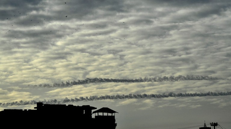 Vệt tên lửa trên bầu trời Kiev. (Ảnh: AFP/Sergei Supinsky)
