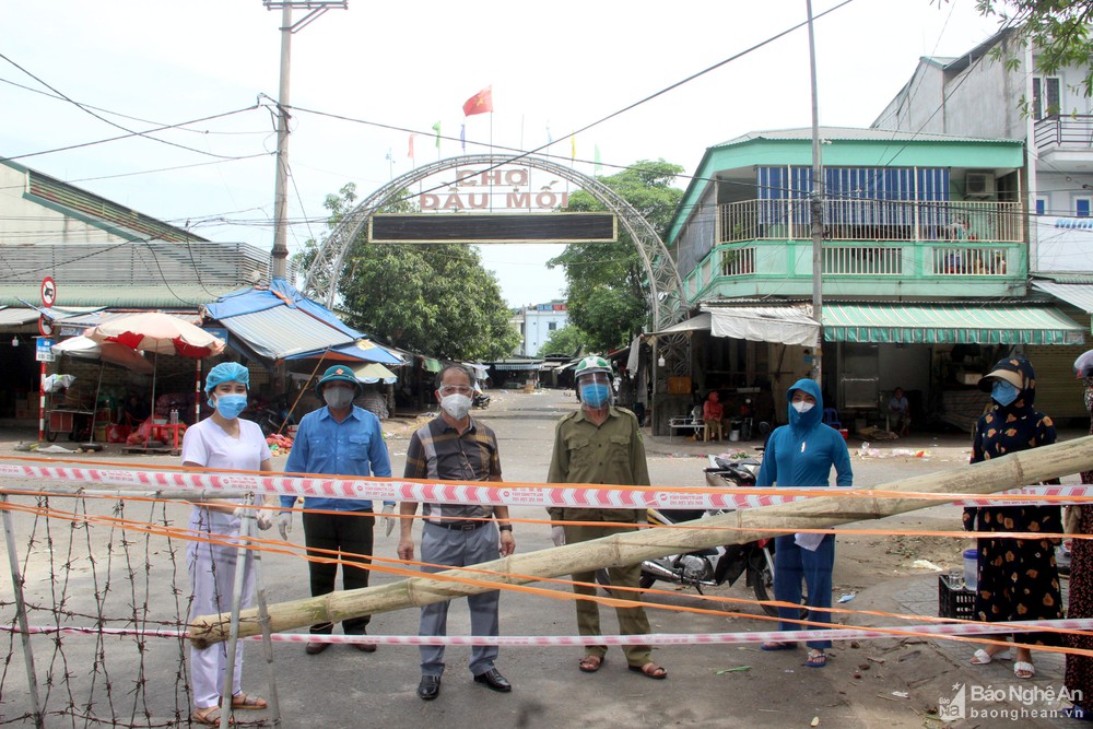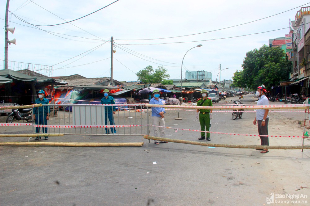 Lực lượng chức năng đã lập 8 chốt kiểm soát người và phương tiện xung quanh khu chợ đầu mối hoa quả và đình Tây chợ Vinh.