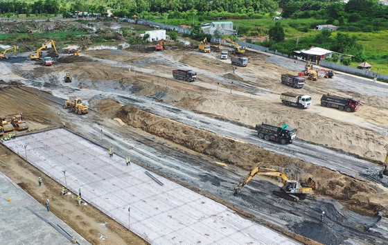 Thi công trên công trường Bệnh viện dã chiến (BVDC) huyện Bình Chánh, chiều 17-7