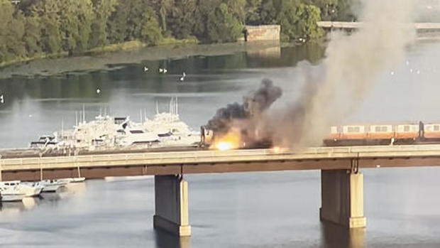 Đoàn tàu dừng giữa cầu sau khi bốc cháy. Ảnh: CBSNews