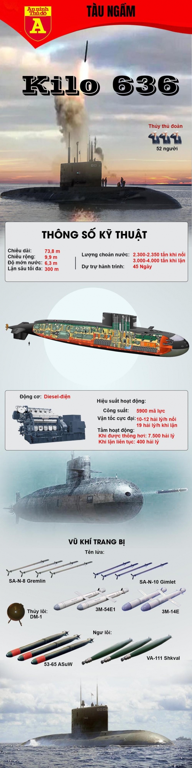 Kilo 636 Nga thuộc lớp tàu ngầm tấn công chạy bằng động cơ diesel – điện, có nhiệm vụ tác chiến chống hạm và chống ngầm. Đây là tàu ngầm thuộc hế hệ thứ ba (loại tiên tiến nhất thế giới).