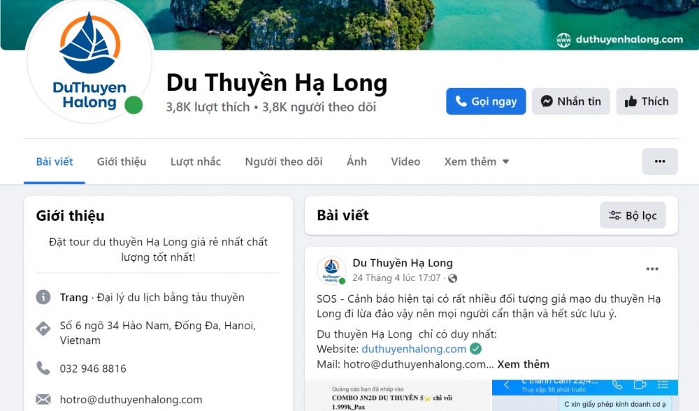 Đơn vị quản lý Du thuyền Hạ Long lên tiếng cảnh báo du khách về việc bị giả mạo fanpage lừa đảo khách hàng đặt tour du lịch.