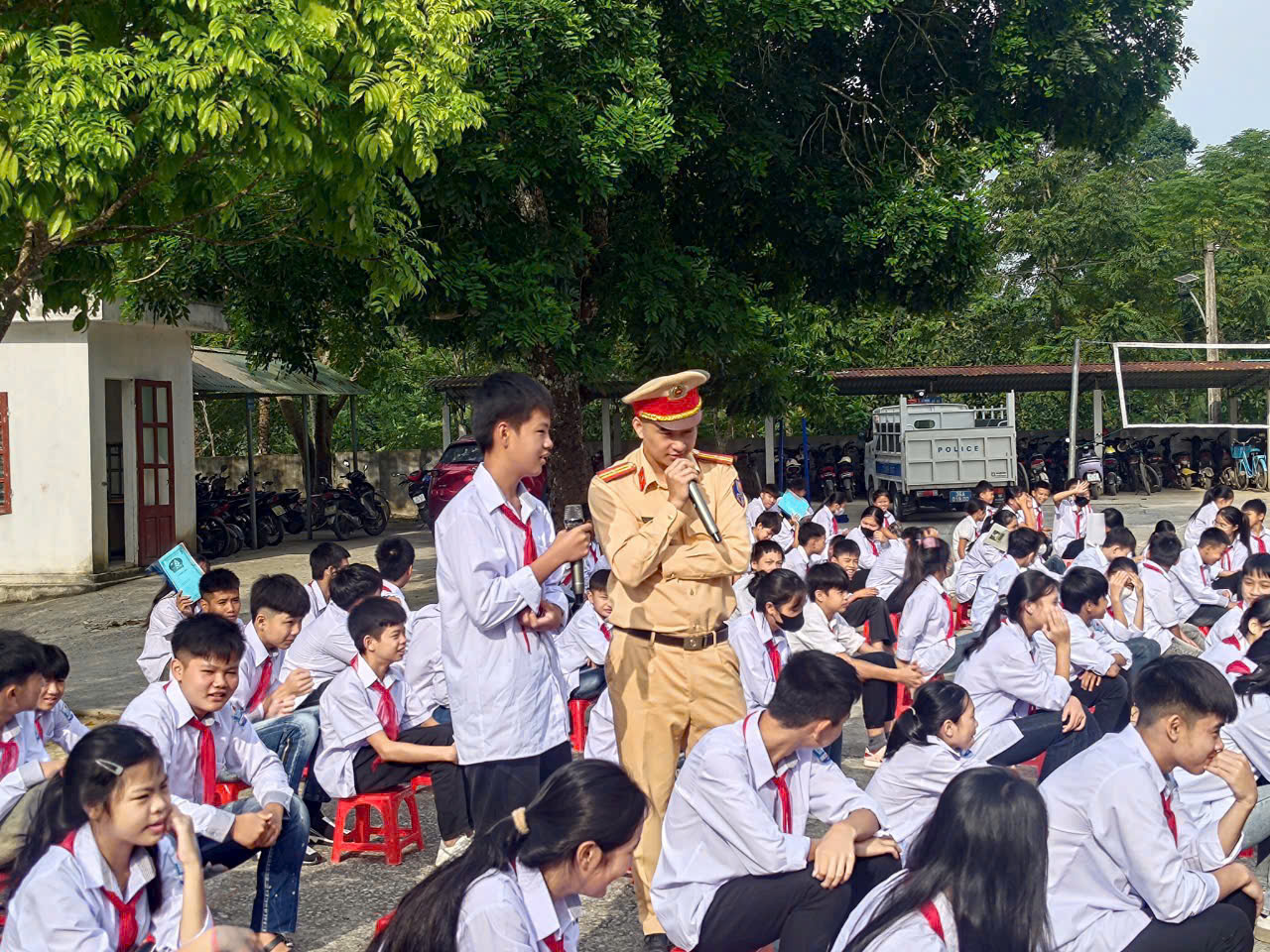Ngoài ra, các em học sinh còn tham gia giao lưu, trao đổi, chia sẻ những kiến thức và trả lời các câu hỏi trắc nghiệm về Luật Giao thông đường bộ, thông qua đó, góp phần nâng cao hiểu biết, ý thức trách nhiệm của học sinh trong việc chấp hành các quy định của pháp luật về trật tự ATGT và xây dựng văn hóa giao thông trong trường học./.