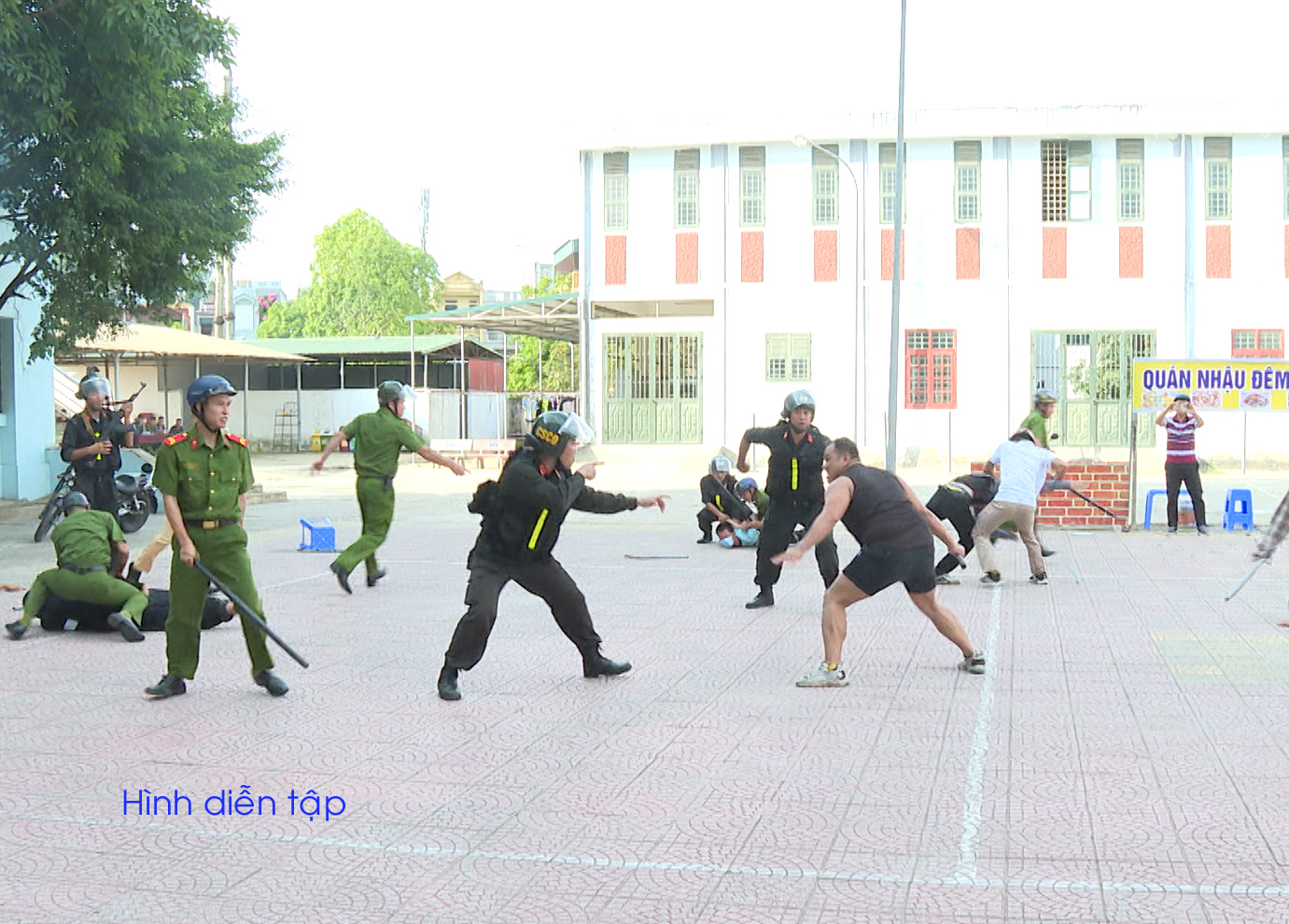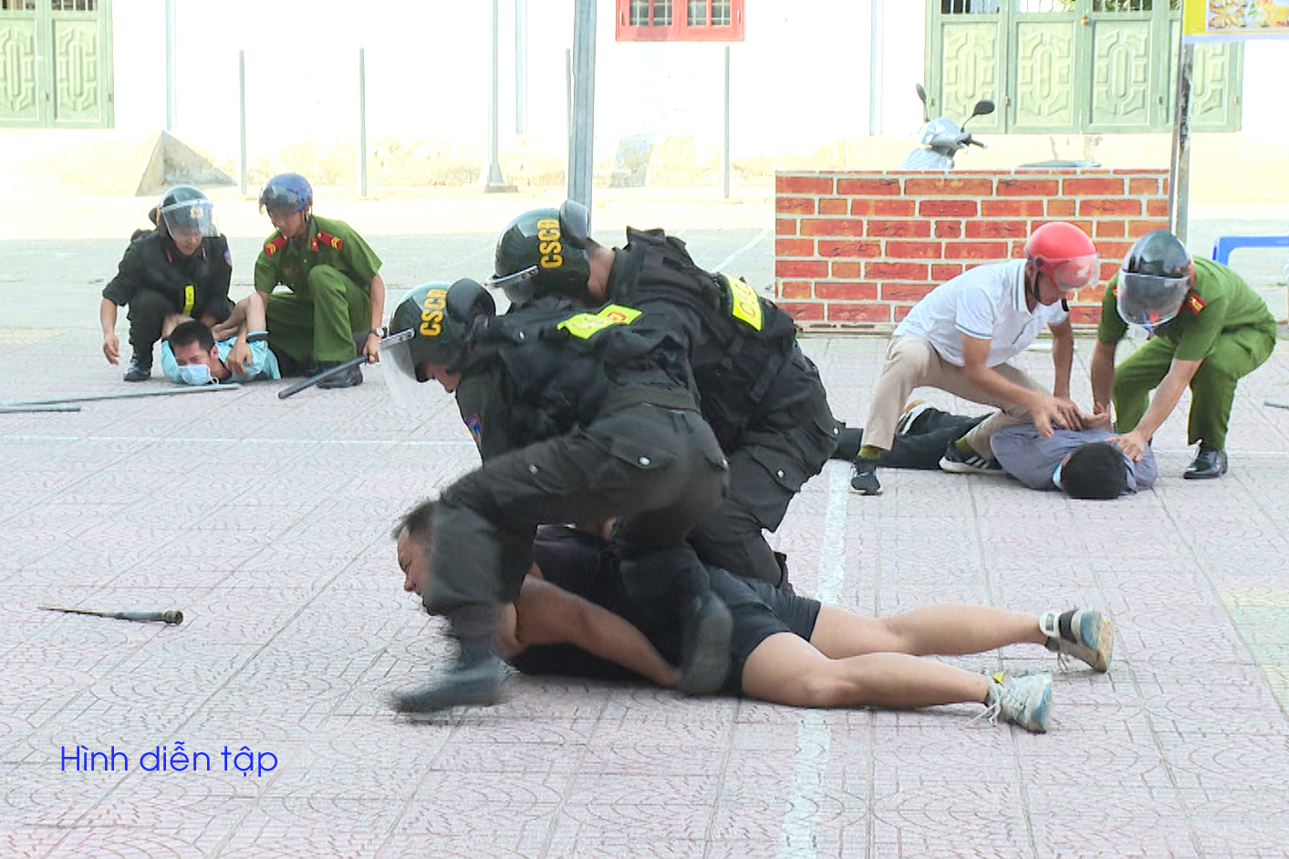 Tại buổi tập huấn, Công an tỉnh đã tiến hành diễn tập phương án xử lý tình huống “Các nhóm đối tượng tập trung sử dụng vũ khí liệu nổ, hung khí nguy hiểm để giải quyết mâu thuẫn, có khả năng gây án đặc biệt nghiêm trọng”.