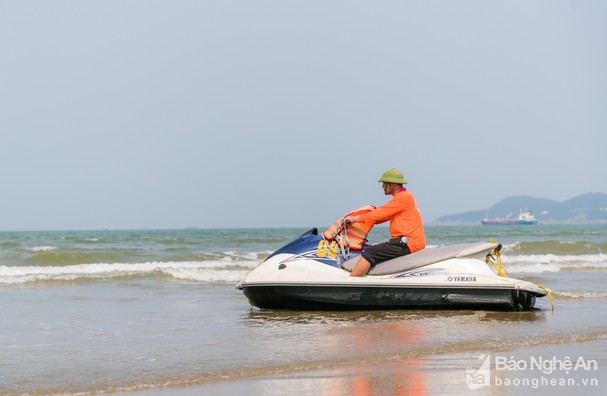 Lực lượng cứu hộ và phòng chống thiên tai thị xã Cửa Lò đã sẵn sàng làm nhiệm vụ đảm bảo an toàn cho khách du lịch. Ảnh: Đức Anh