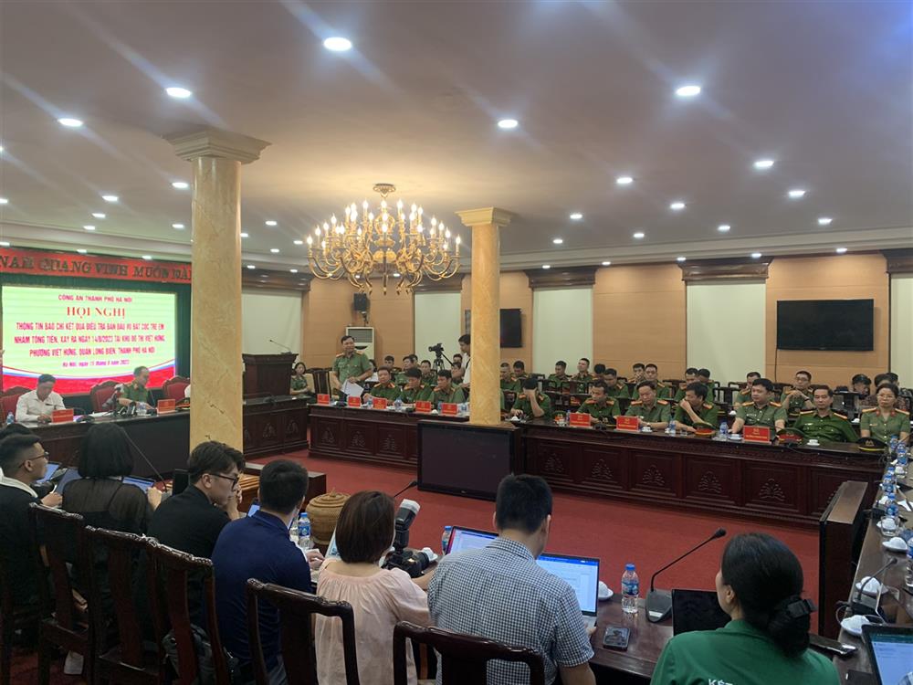 Thiếu tướng Nguyễn Thanh Tùng, Phó Giám đốc Công an thành phố Hà Nội chủ trì buổi thông tin báo chí.