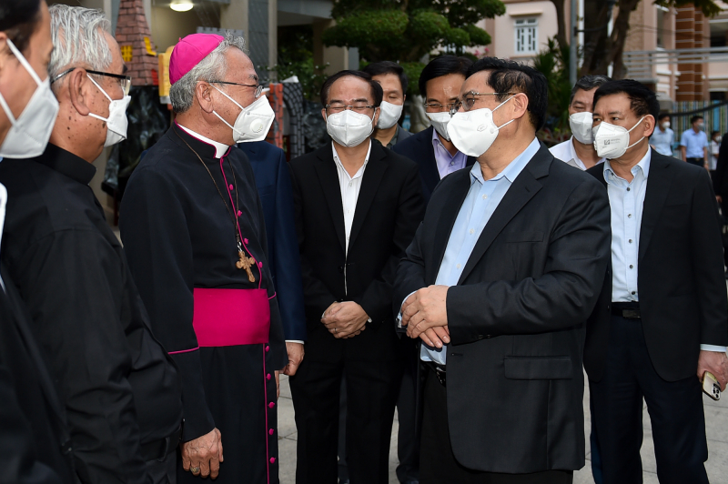 Thủ tướng đánh giá cao những đóng góp của các vị linh mục, tu sĩ, đồng bào giáo dân trong thời gian qua, cùng cấp ủy, chính quyền, hệ thống chính trị và nhân dân cả nước tích cực thực hiện các biện pháp phòng chống dịch cho bản thân, gia đình và cộng đồng, đồng thời tích cực tham gia các hoạt động chia sẻ khó khăn với đồng bào cả nước, thể hiện tinh thần đoàn kết, tương thân tương ái, trách nhiệm với đất nước trong giai đoạn khó khăn, dịch bệnh. Thủ tướng có nhắc lại câu chuyện đến thăm, động viên đồng bào Công giáo tại Đồng Nai trong đợt kiểm tra công tác phòng chống dịch tại Đồng Nai. Chứng kiến bà con chấp hành rất nghiêm việc giãn cách và cuộc sống tinh thần của bà con rất vui vẻ.