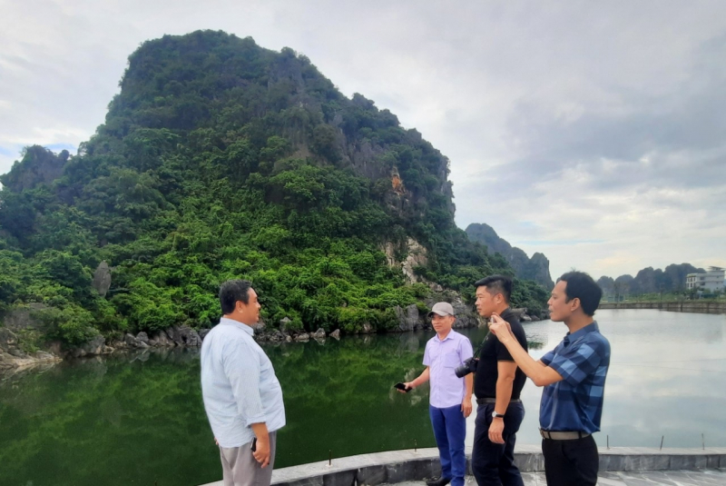 Ông Tạ Đức Quyết (bên trái), đại diện Chủ đầu tư Khu đô thị mới Ao Tiên khẳng định "hòn non bộ" chính là Hòn Núi Dê được cải tạo thành hồ điều hòa.