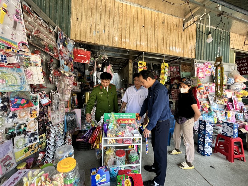 Chính quyền xã Xuân Sinh (huyện Thọ Xuân) ghi nhận nhiều mặt hàng không rõ nguồn gốc, hết hạn sử dụng được bày bán ngay cổng trường.