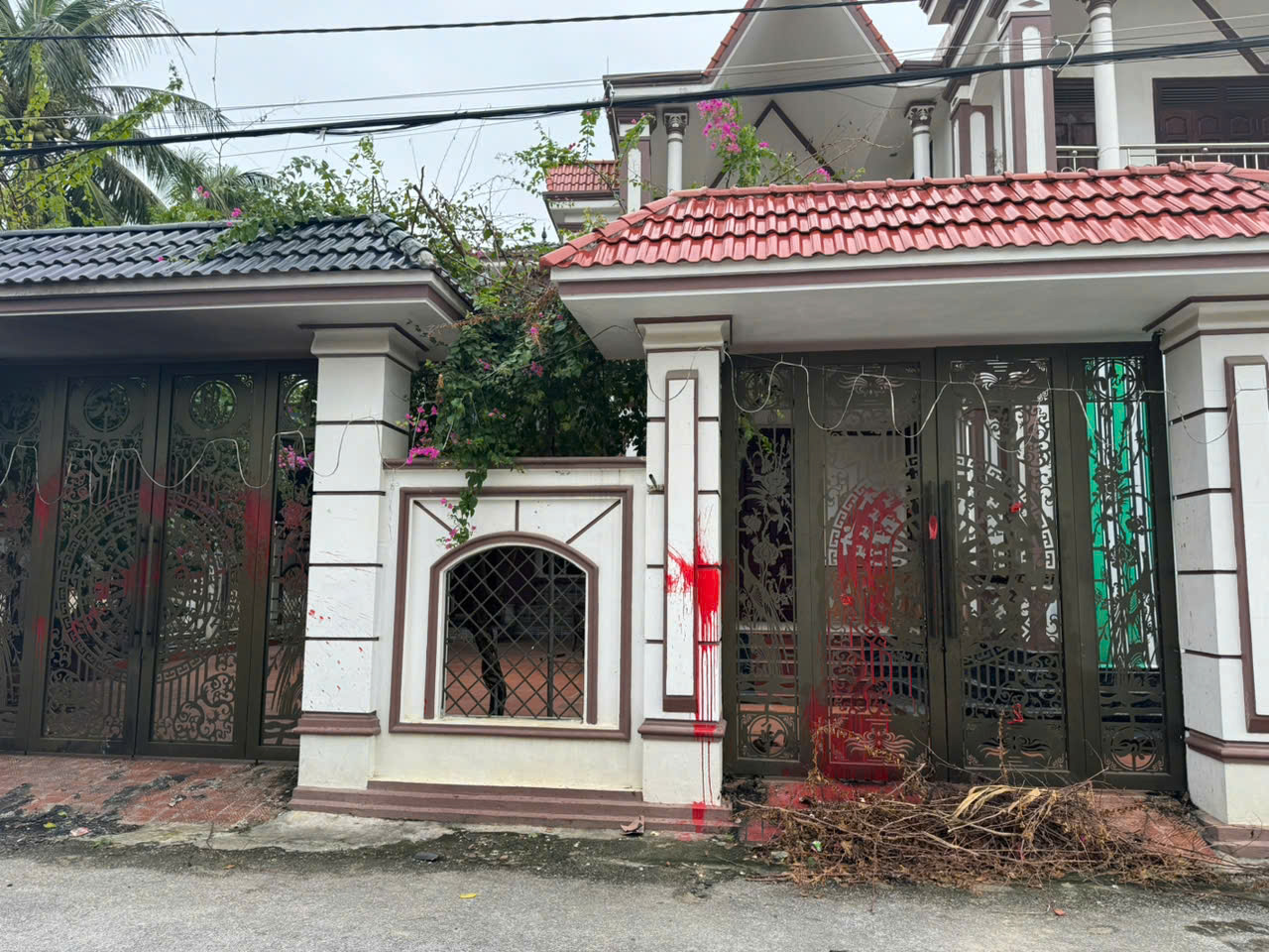Ngôi nhà của chủ hụi Cao Thị Dung ở xã Hoằng Phong bị ném chất bẩn