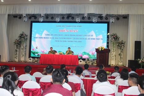 Chiều 16/8, Công an TP Vinh tổ chức diễn đàn “Công an lắng nghe ý kiến doanh nghiệp, chủ cơ sở hoạt động ngành nghề đầu tư kinh doanh có điều kiện về an ninh trật tự” trên địa bàn. Dự hội nghị có đại diện lãnh đạo các phòng nghiệp vụ liên quan Công an tỉnh, Lãnh đạo CATP Vinh, Chỉ huy các Đội nghiệp vụ CATP cùng hơn 100 khách mời là Chủ doanh nghiệp, chủ các cơ sở hoạt động trong lĩnh vực đầu tư kinh doanh có điều kiện về ANTT trên địa bàn.
