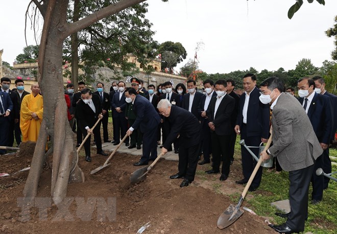 Sáng 17/2 (mùng 6 Tết Tân Sửu 2021), Tổng Bí thư, Chủ tịch nước Nguyễn Phú Trọng đã đến dâng hương tưởng nhớ các bậc tiên đế, hiền tài, các anh hùng liệt sỹ có công với đất nước và trồng cây lưu niệm tại Khu di tích Hoàng Thành Thăng Long, Thủ đô Hà Nội.