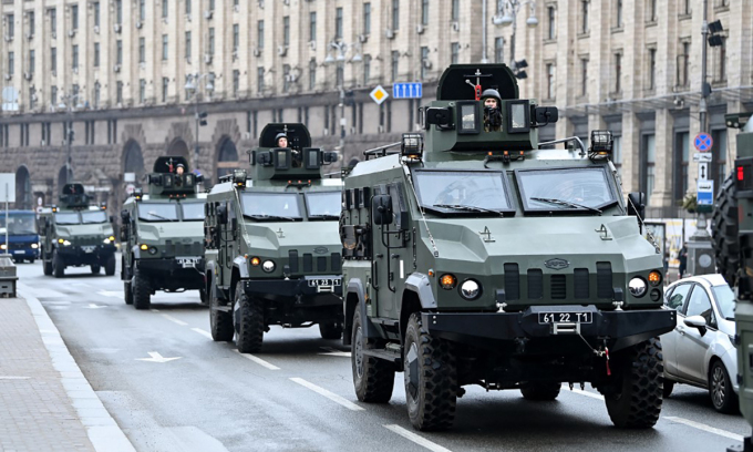 Đoàn xe quân sự Ukraine gần Kiev. Ảnh: Getty Images