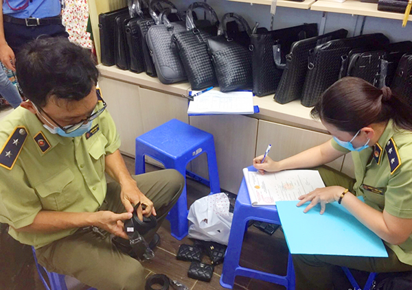 Lực lượng QLTT TP. Hồ Chí Minh kiểm tra một cửa hàng kinh doanh túi xánh và phát hiện nhiều dấu hiệu vi phạm liên quan đến quyền sở hữu trí tuệ.