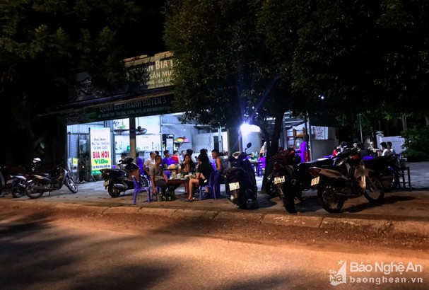 Quán bia Thanh Huyền, xã Hưng Lộc, TP. Vinh tập trung đông người tối 9/7. Ảnh: Quang An