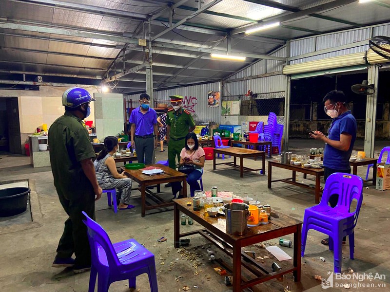 Tối 9/7, lực lượng chức năng xã Hưng Lộc (TP. Vinh) tiếp tục ra quân tuần tra, xử lý các trường hợp vi phạm Chỉ thị 15 trong công tác phòng, chống dịch Covid-19.