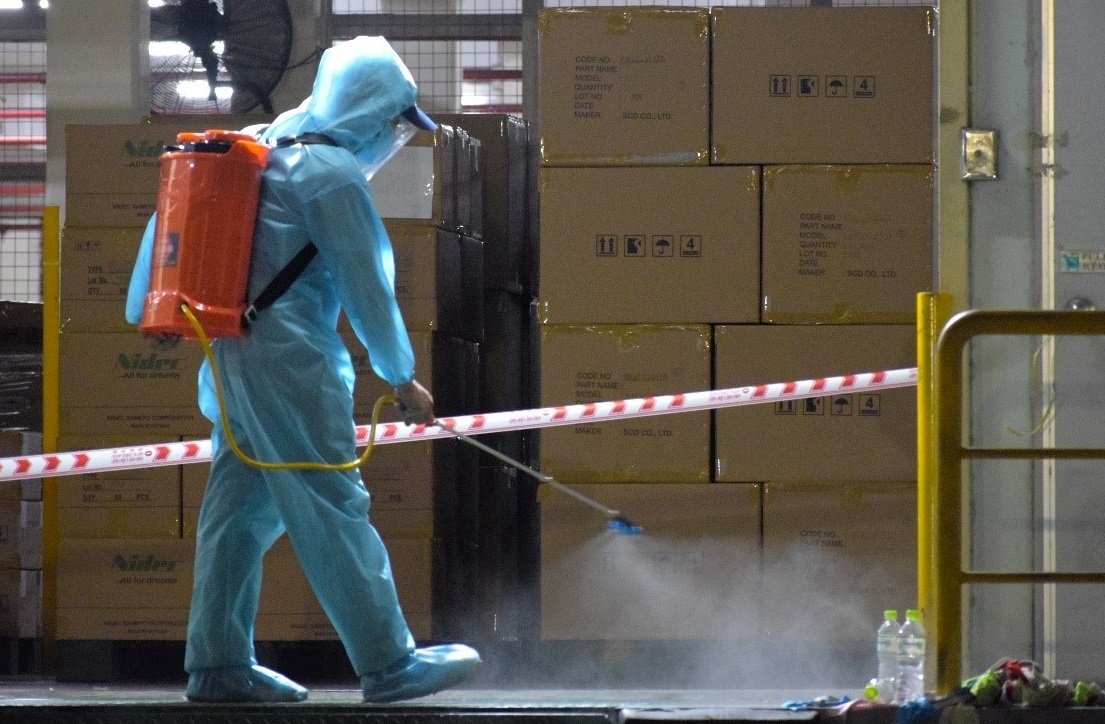 Phun khử khuẩn phòng chống dịch Covid-19 tại một công ty ở TP.HCM