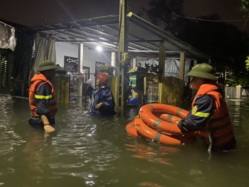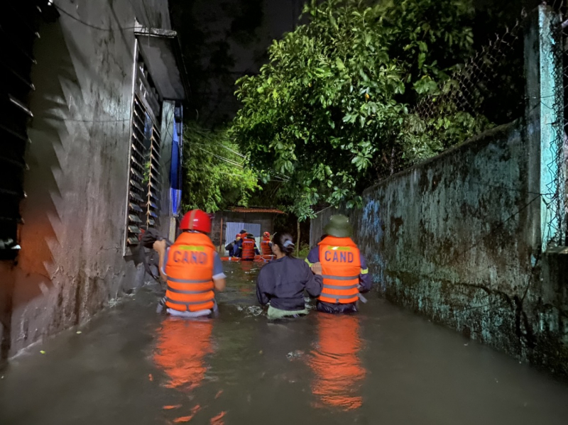 Đặc biệt, tại khu vực xóm Gióng thuộc khu vực 1, phường An Tây, TP Huế có nơi ngập hơn 1 m và nước chảy siết. Công an tỉnh Thừa Thiên-Huế đã huy động lực lượng Phòng Cảnh sát PCCC và CNCH cùng Công an TP Huế, Công an phường An Tây và chính quyền địa phương triển khai lực lượng, phương tiện cứu hộ để di dời hàng chục hộ dân, người lao động và sinh viên tạm trú tại các dãy trọ ở khu vực ngập lụt này đến nơi an toàn. Hiện lực lượng Công an đang tiếp tục kiểm tra và di dời những hộ trong vùng thấp trũng có nguy cơ bị ngập lụt, đảm bảo an toàn tính mạng và tài sản của nhân dân.