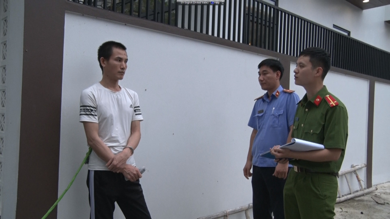 Cán bộ điều tra Công an TP Phủ Lý và Viện KSND TP Phủ Lý dẫn giải đối tượng thực nghiệm hiện trường vụ án.