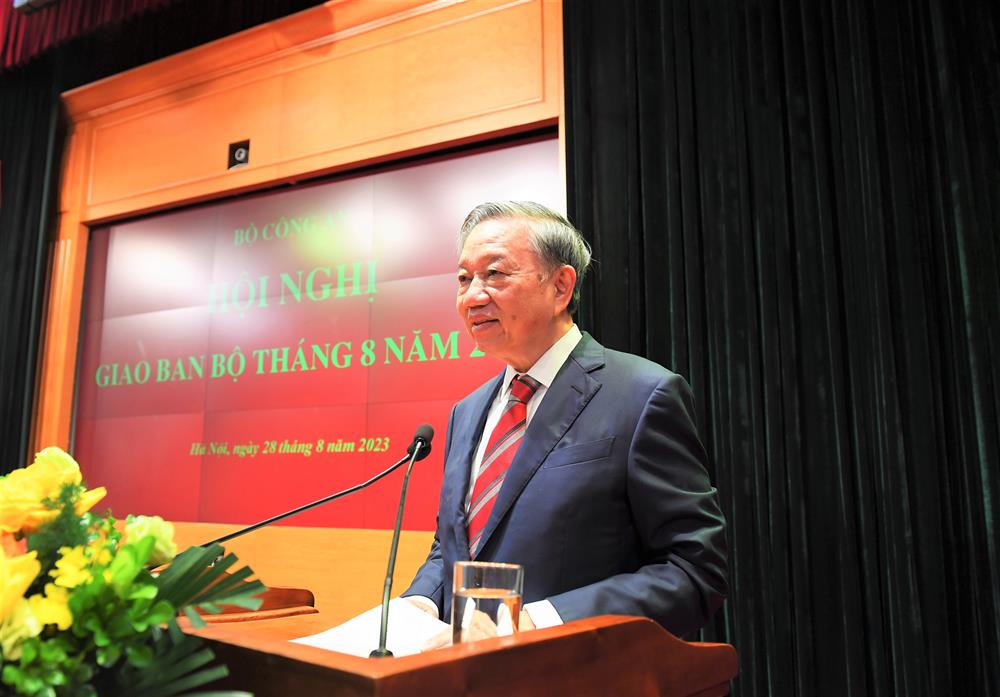 Bộ trưởng Tô Lâm nhấn mạnh việc tiếp tục tháo gỡ khó khăn, vướng mắc trong công tác phòng cháy, chữa cháy cho các tổ chức, doanh nghiệp; đẩy mạnh công tác tuyên truyền và xây dựng phong trào toàn dân phòng cháy, chữa cháy và cứu nạn, cứu hộ. Tập trung triển khai các biện pháp kéo giảm tai nạn giao thông, thực hiện đấu giá biển số xe ô tô; đảm bảo trật tự, an toàn giao thông, phân luồng, điều tiết giao thông và bảo đảm an ninh, trật tự dịp Quốc khánh 2/9 và triển khai thực hiện “Tháng cao điểm an toàn giao thông cho học sinh đến trường – Tháng 9”.