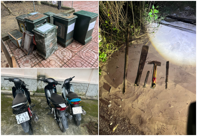 Tang vật thu giữ: 10 két sắt, 08 điện thoại di động, 03 xe mô tô, 02 kìm cắt sắt, 02 xà bạy, 02 búa đinh, 01 dao nhọn, hơn 30 triệu đồng tiền mặt và các vật chứng, tài liệu liên quan.