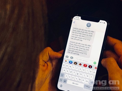 Tin nhắn bọn vay nặng lãi gửi đến số điện thoại của Ngọc để mời gọi vay tiền