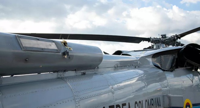Theo đài truyền hình Noticias Caracol, ít nhất 6 phát đạn đã bắn trúng vào trực thăng nhưng máy bay đã được các phi công giàu kinh nghiệm cho hạ cánh an toàn.