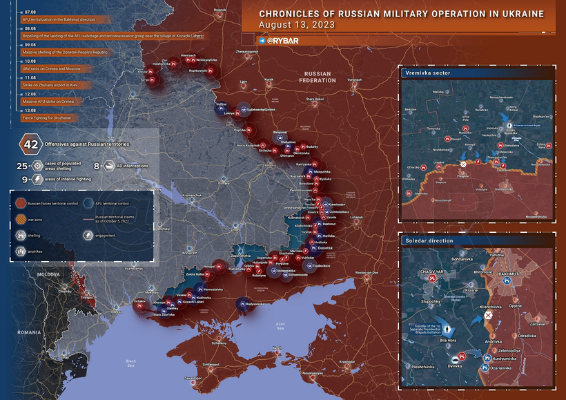 Bản đồ chiến sự Ukraine ngày 13/8. Ảnh: Rybar.