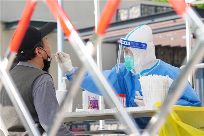 Nhân viên y tế lấy mẫu xét nghiệm COVID-19 cho người dân tại Bắc Kinh, Trung Quốc. Ảnh: THX/TTXVN