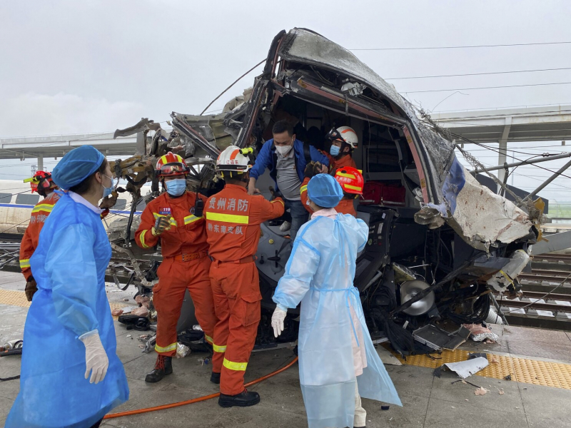 Vụ tai nạn tại Quý Châu đã cướp đi sinh mạng của người lái tàu. Ảnh: Tân Hoa Xã.
