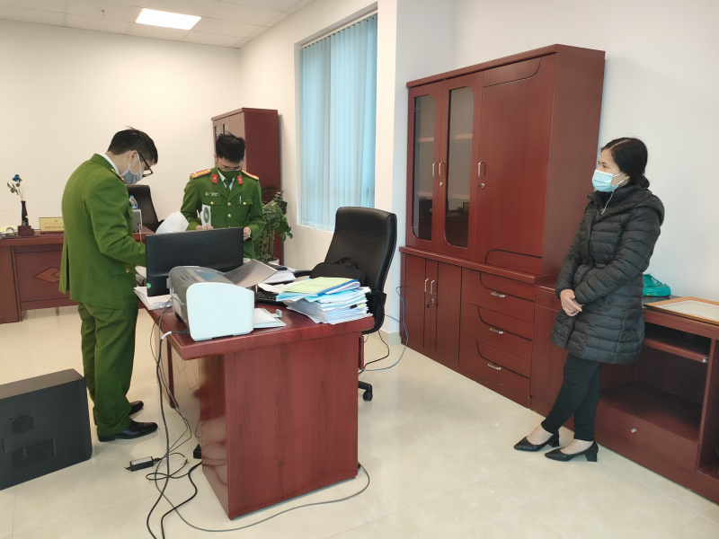 Các cán bộ Công an tỉnh Bắc Giang khám xét nơi làm việc của Nguyễn Thị Song Hà.