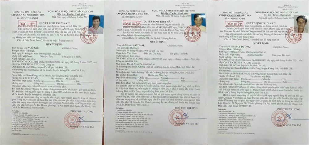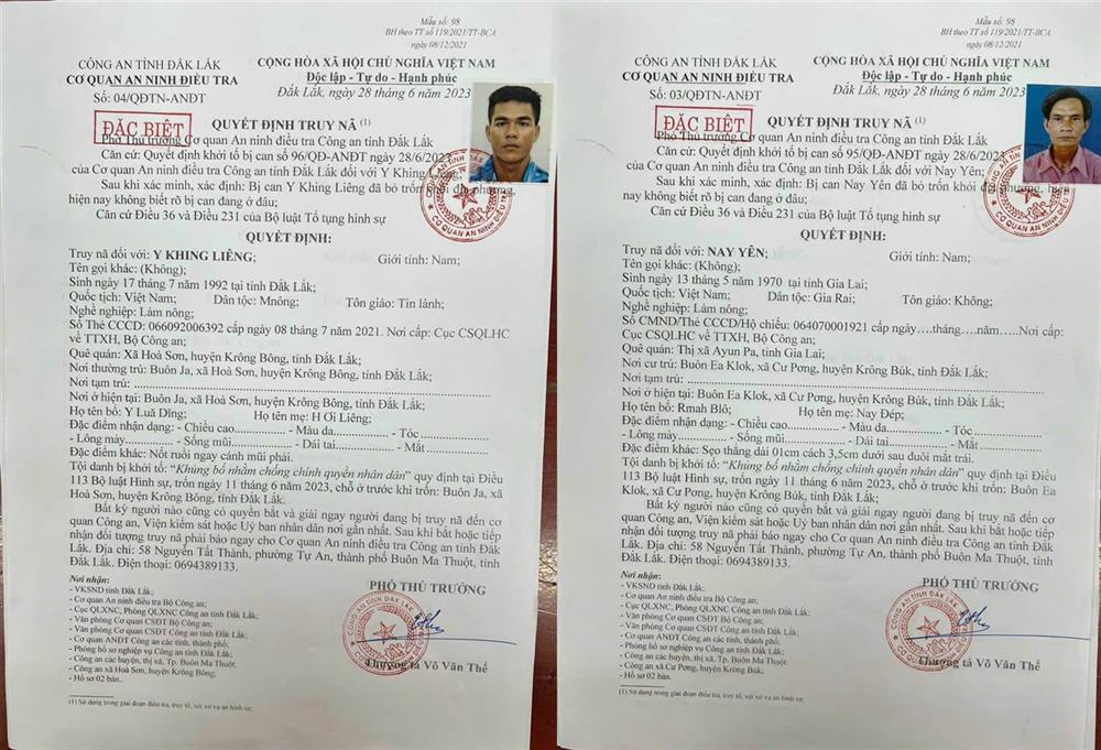 Cơ quan An ninh điều tra Công an tỉnh Đắk Lắk cho biết, đã ra quyết định truy nã đặc biệt đối với 5 đối tượng liên quan đến vụ việc xảy ra tại huyện Cư Kuin, tỉnh Đắk Lắk ngày 11/6 vừa qua, về tội "Khủng bố nhằm chống chính quyền nhân dân".