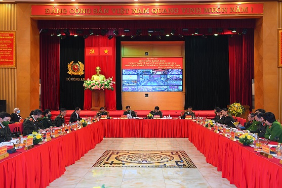 Hội thảo được tổ chức theo hình thức trực tuyến từ điểm cầu Hội trường lớn Bộ Công an tại Hà Nội đến 63 điểm cầu Công an tỉnh, thành phố trực thuộc Trung ương và các trường Công an nhân dân khu vực phía Nam.