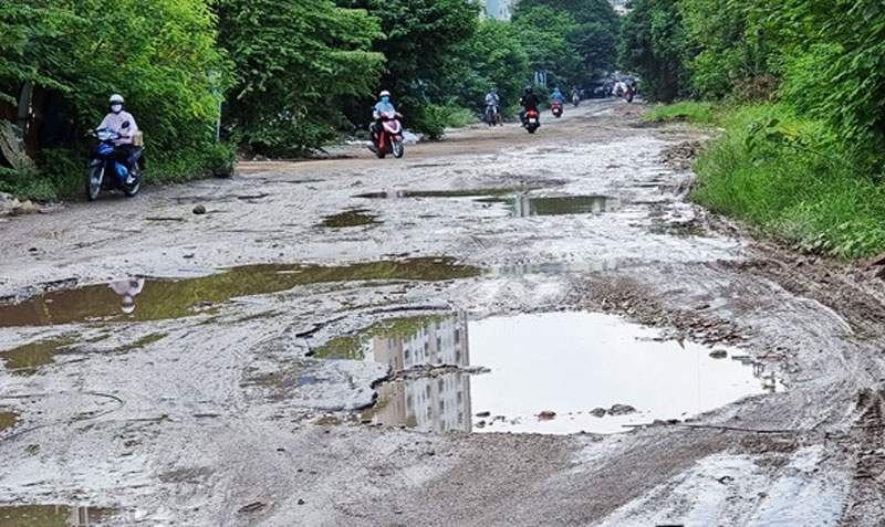 Mặt đường tuyến giao thông từ phố Nguyễn Cảnh Dị đến đường Định Công (quận Hoàng Mai) xuống cấp nghiêm trọng.