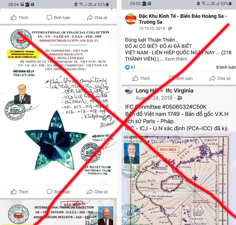Một trong số đó, phải kể đến trường hợp của Nguyễn Quốc Long, Lê Nguyên Thành, sáng lập viên, đại diện pháp luật Công ty cổ phần (CP) Di sản quốc tế Hồ Tràm; tổ chức tự xưng “Hội đoàn xử lý di sản tài chính quốc tế”... Thời gian trước đây, Nguyễn Quốc Long, Lê Nguyên Thành thành lập và liên tục sử dụng pháp nhân Công ty CP quốc tế Hồ Tràm lập nhiều bộ “hồ sơ”, “tờ trình” đề nghị được tiếp nhận nguồn vốn của “Hội đoàn xử lý di sản tài chính quốc tế”.
