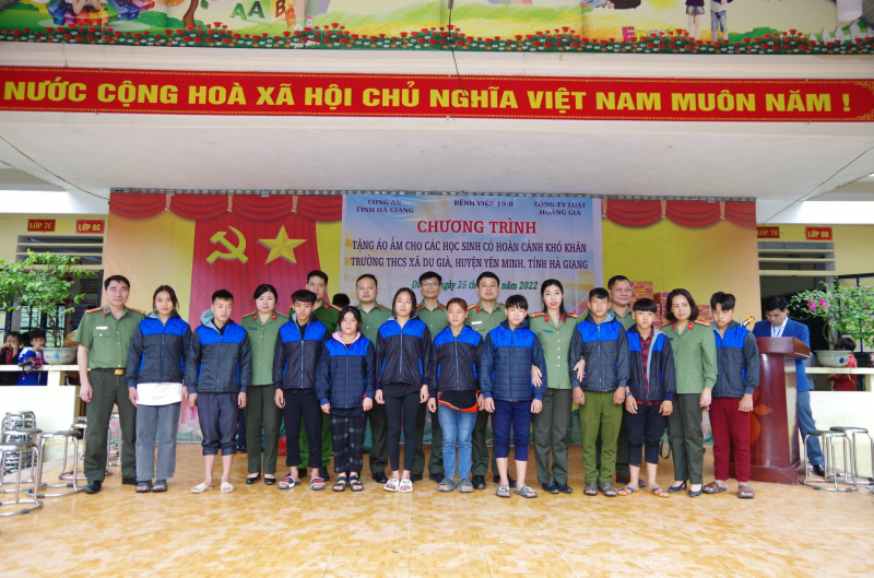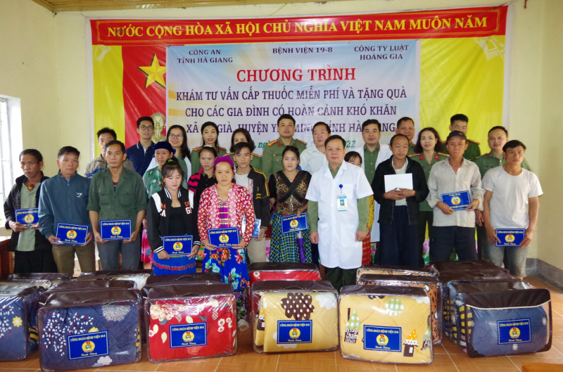 Trong chuyến công tác lần này, Bệnh viện 19-8 Bộ Công an đã phối hợp với Công an tỉnh Hà Giang, Công ty Luật Hoàng Gia và doanh nghiệp, các nhà hảo tâm tổ chức chương trình khám, tư vấn, cấp thuốc miễn phí và tặng quà cho các gia đình chính sách có hoàn cảnh khó khăn tại xã Du Già, huyện Yên Minh, tỉnh Hà Giang.