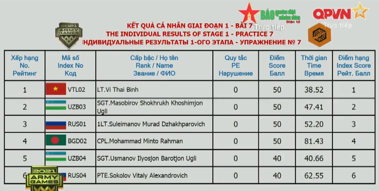 Việt Nam dẫn đầu nội dung Xạ thủ bắn tỉa tại Army Games 2021