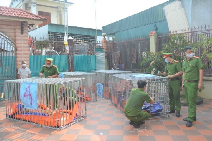 Lực lượng công an kiểm tra 2 nhà dân ở xã Đô Thành phát hiện 17 con hổ đang bị nuôi nhốt trái phép